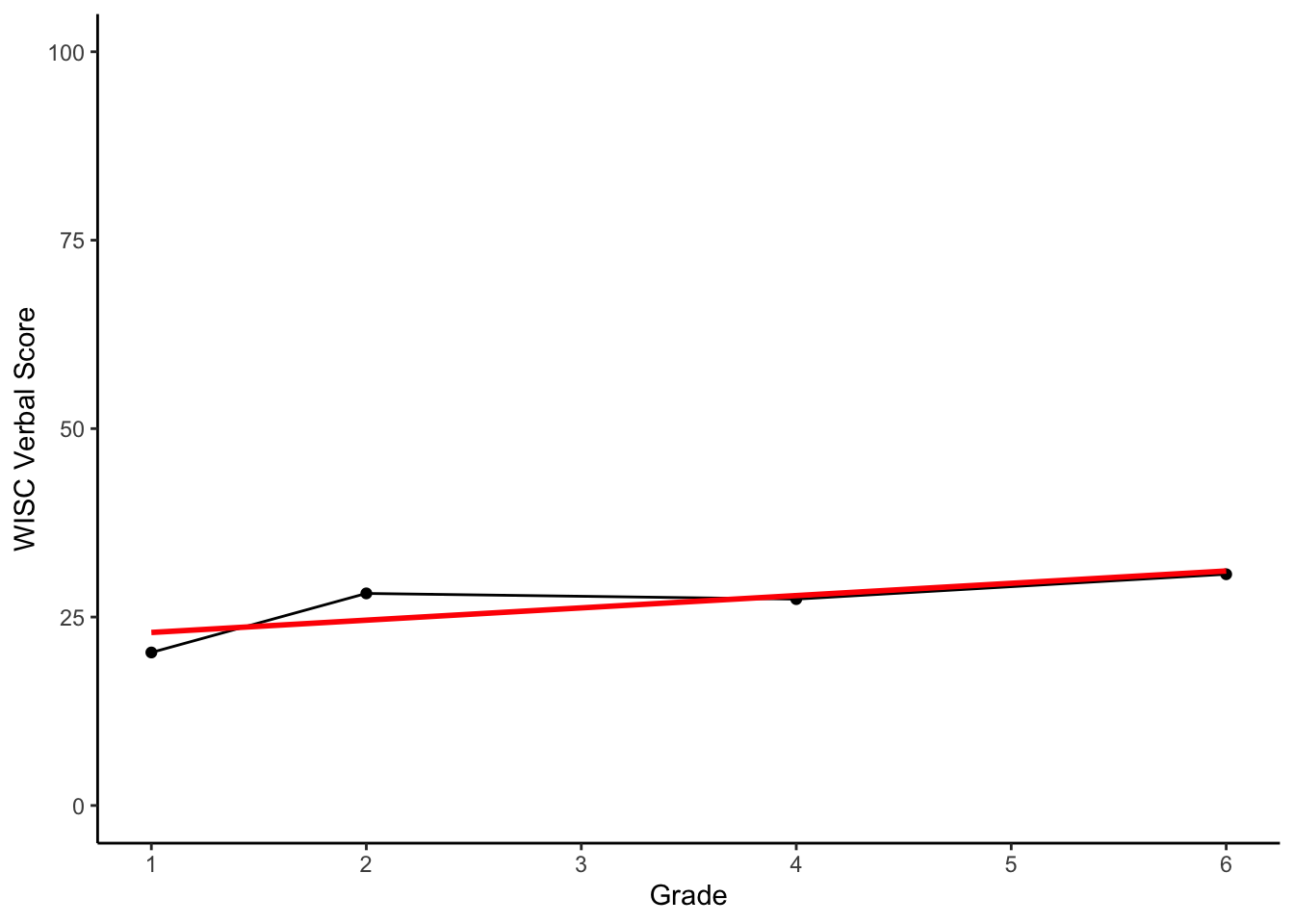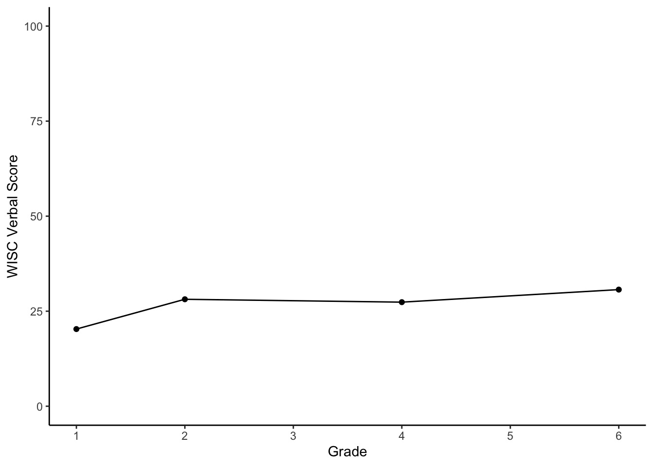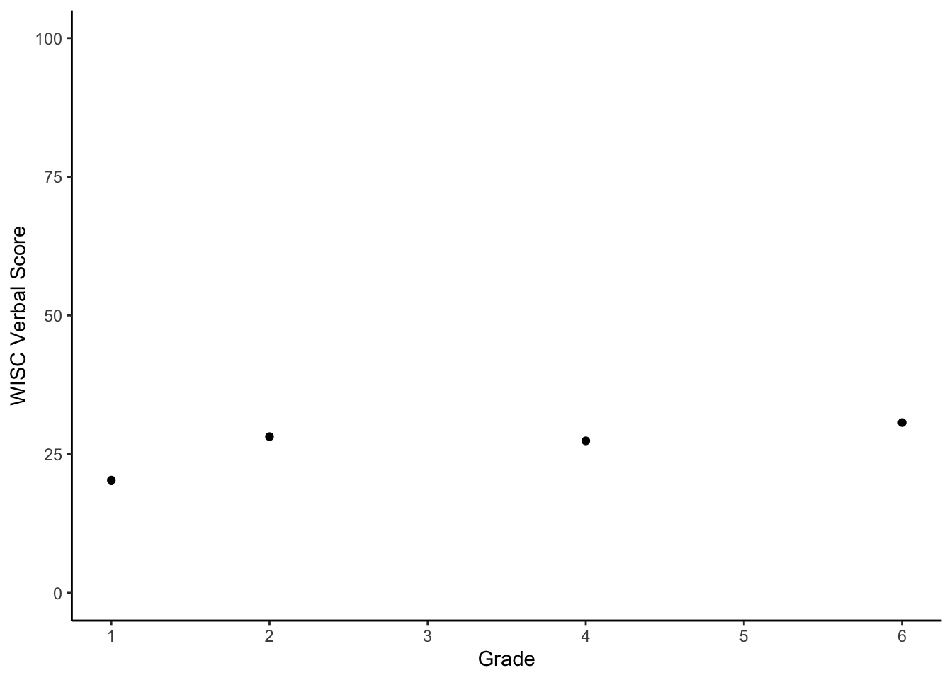 ylab("WISC Verbal Score") + ylim(0,100) +