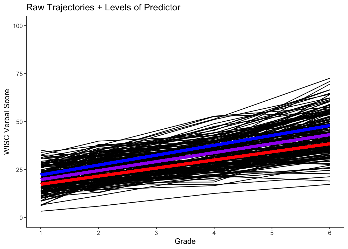 ggtitle("Raw Trajectories + Levels of Predictor") +