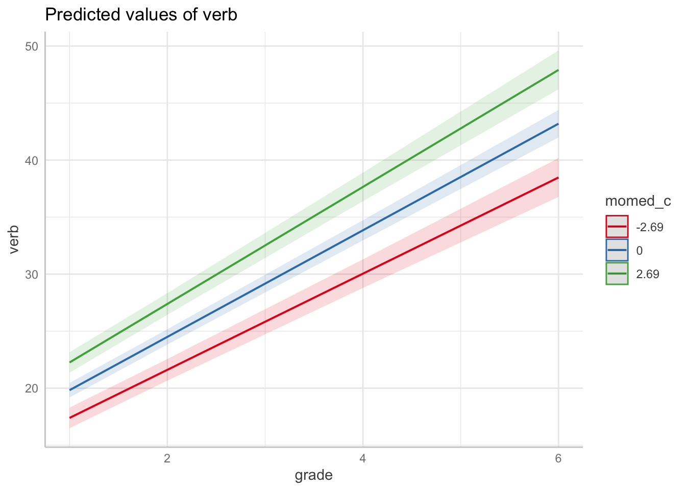 fixed= verb ~ 1 + grade + momed_c + grade:momed_c,